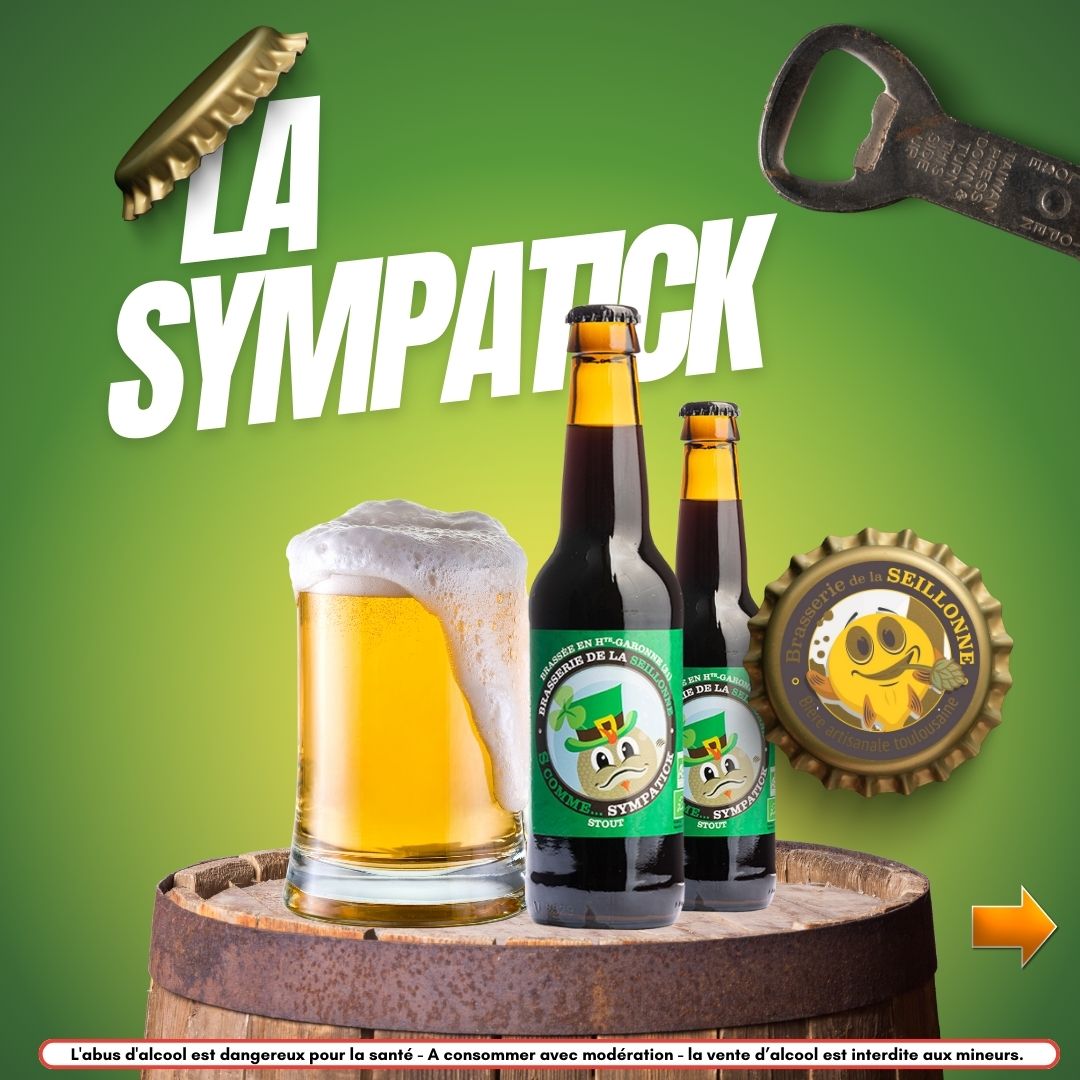 La Sympatick, c’est avant tout une stout artisanale, c’est-à-dire une bière brune aux arômes de café et de chocolat noir, typique des bières anglo-saxonnes. Son nom est un clin d’œil à la fois à son goût réconfortant et à l’ambiance amicale qu’elle évoque.